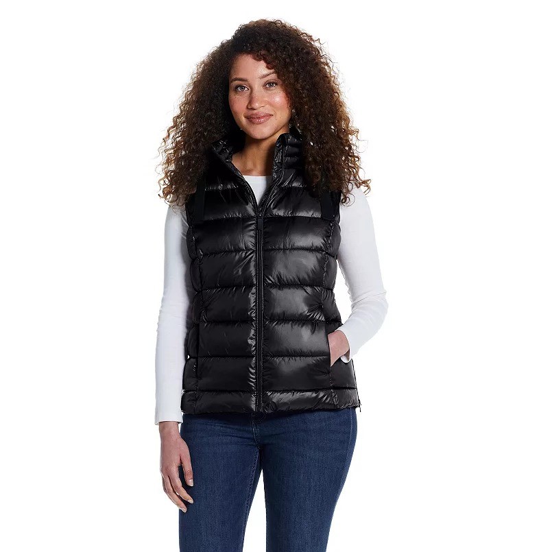 WEATHERPROOF Women's 3/4 Vest w/ Detachable Hood, Size XL, Black. NB: may h