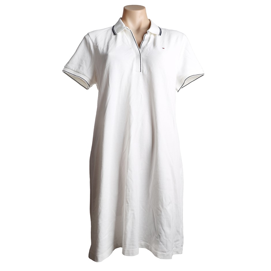 TOMMY HILFIGER Women's Abby Polo Dress, Size L, 96% Cotton, Classic White (