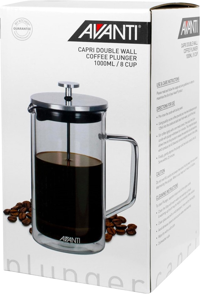 AVANTI 14869 Capri Double Wall Coffee Plunger, 8 Cup/1000 ml Capacity Lot No: 0172-3140585 |