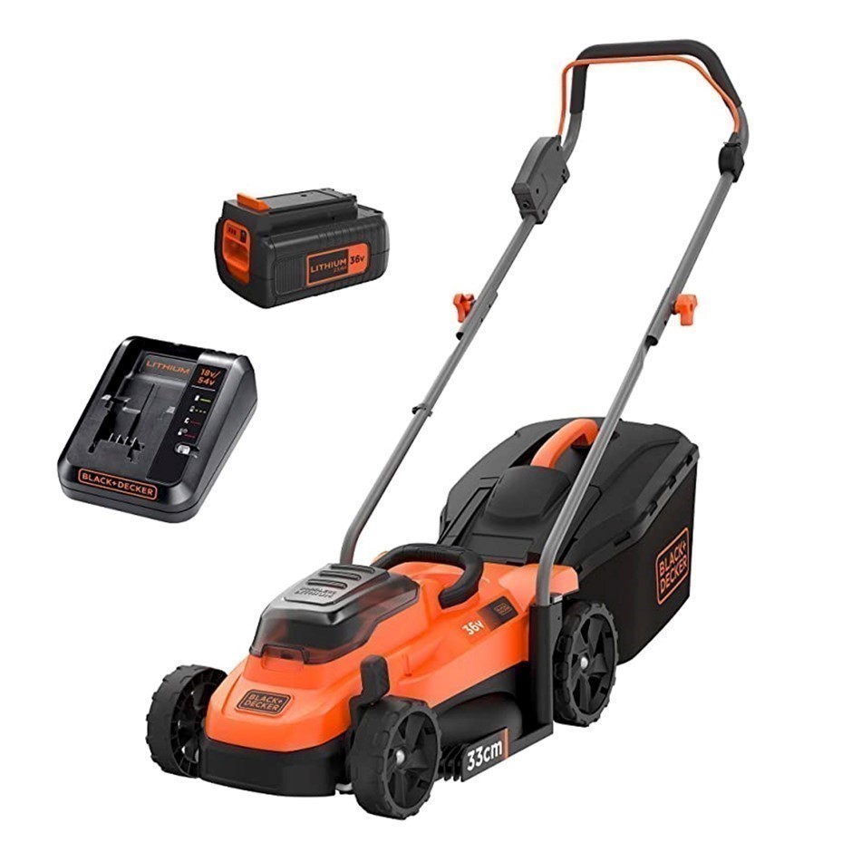 BLACK+DECKER 36V Lithium-Ion 33cm Lawnmower Kit 2.5Ah. Battery Powered, c/w