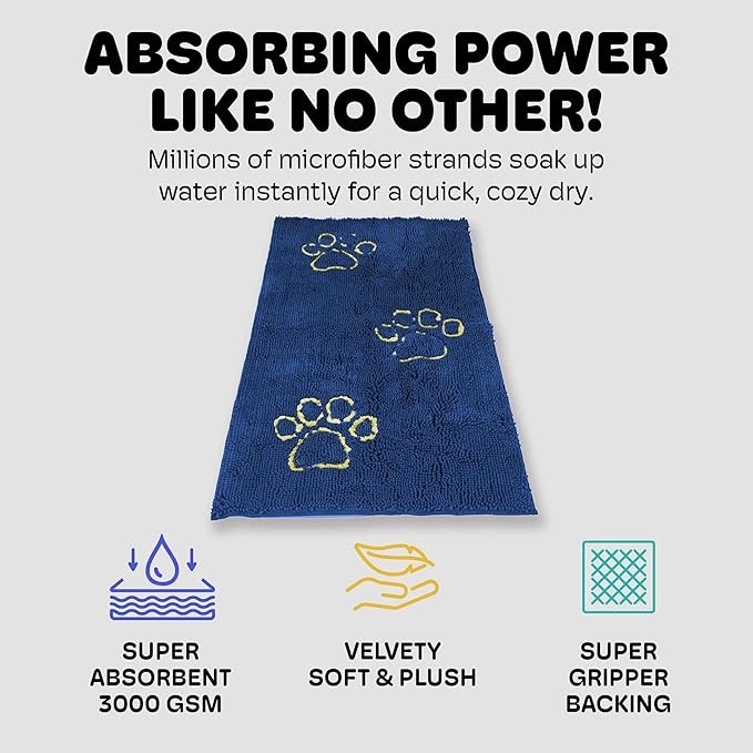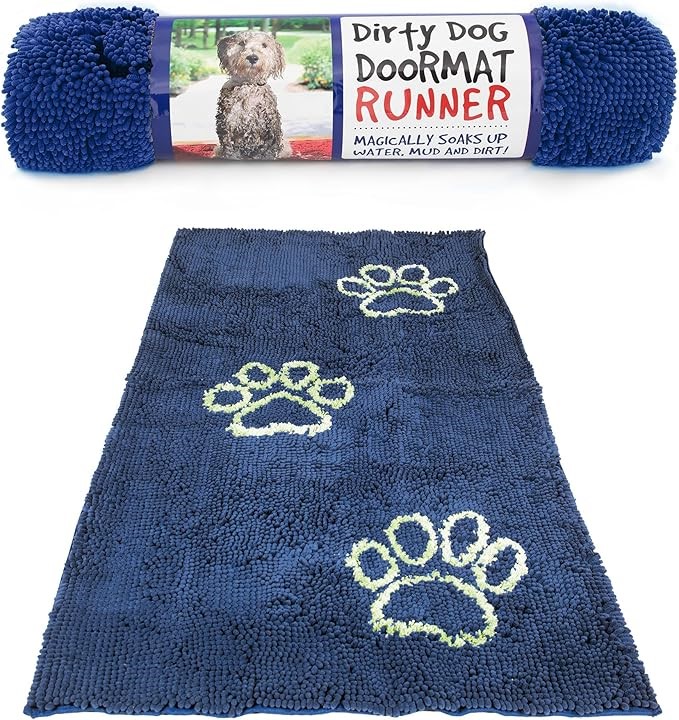 Dirty Dog Doormat Runner measures 60 x 30 inches and is machine washable.