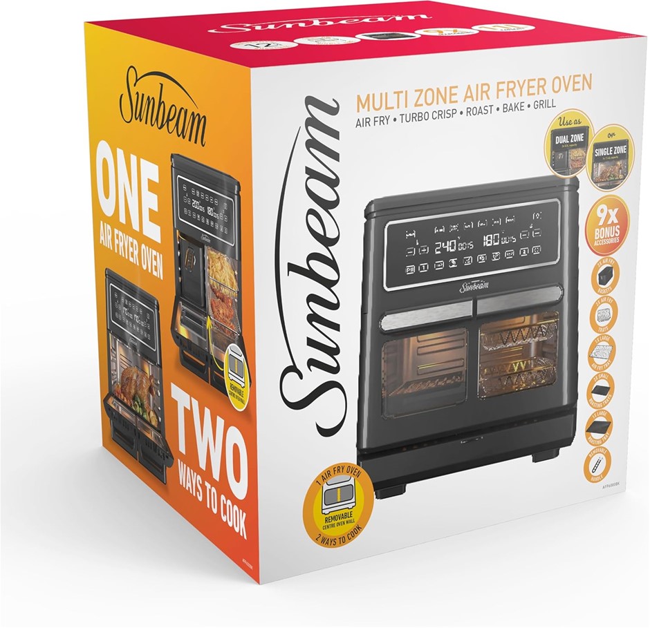 SUNBEAM Multi Zone Air Fryer Oven | Convertible Dual (2x 5.5L) Cooking Zone Lot No: 0024-3140597 |
