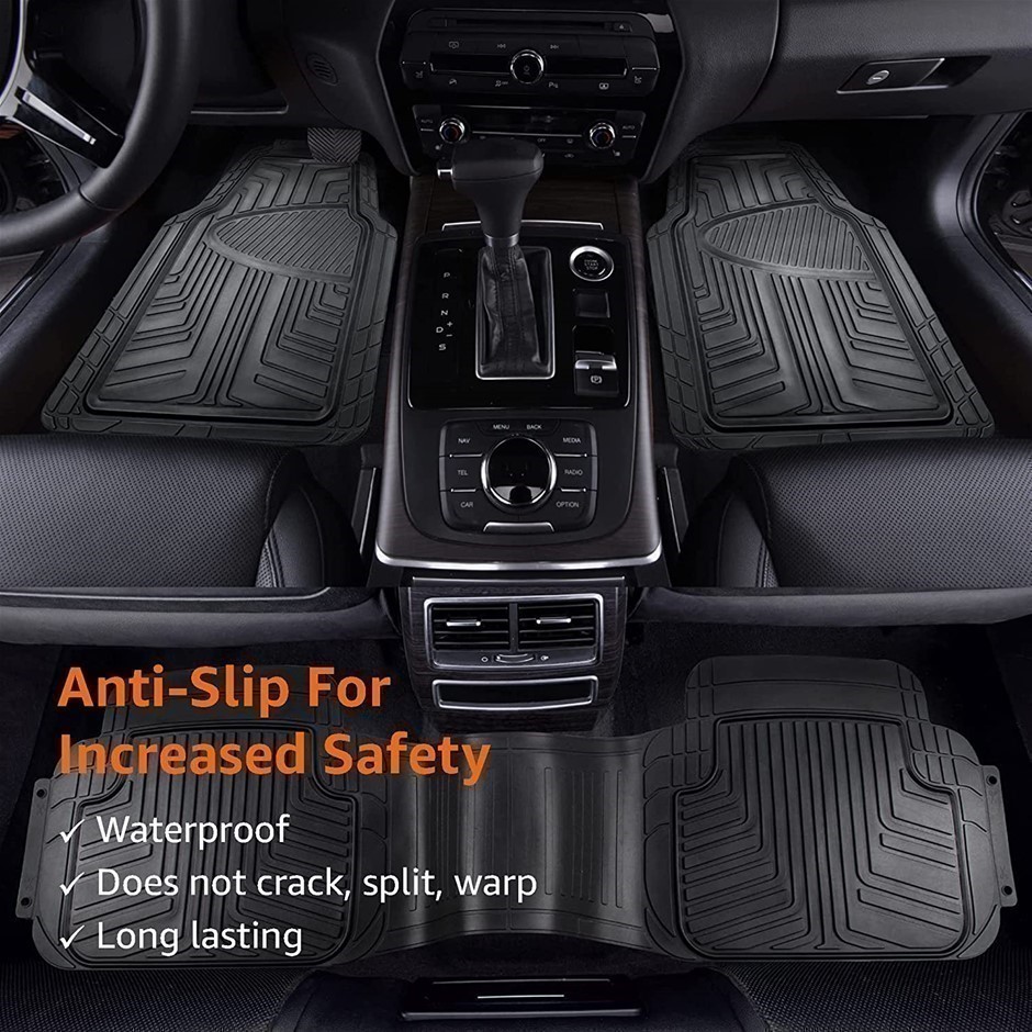 AMAZON BASICS 3-Piece Full Coverage Odorless Rubber Floor Mat for Cars, SUV