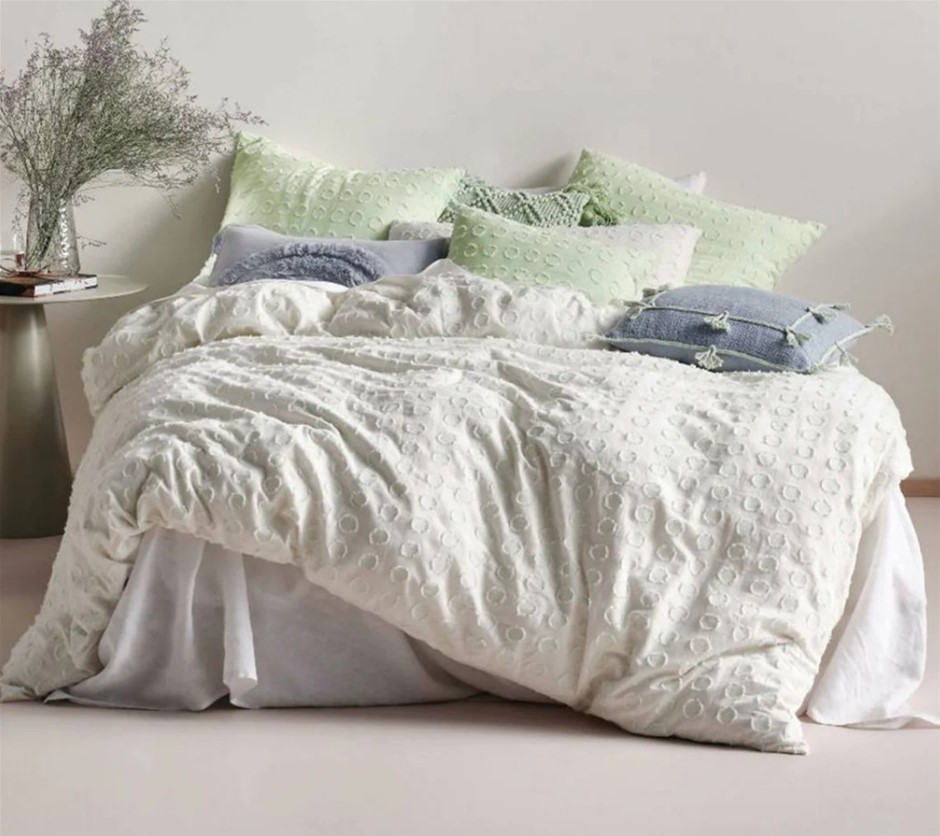 LINEN HOUSE Benedita Mint Quilt Cover Set, Queen.