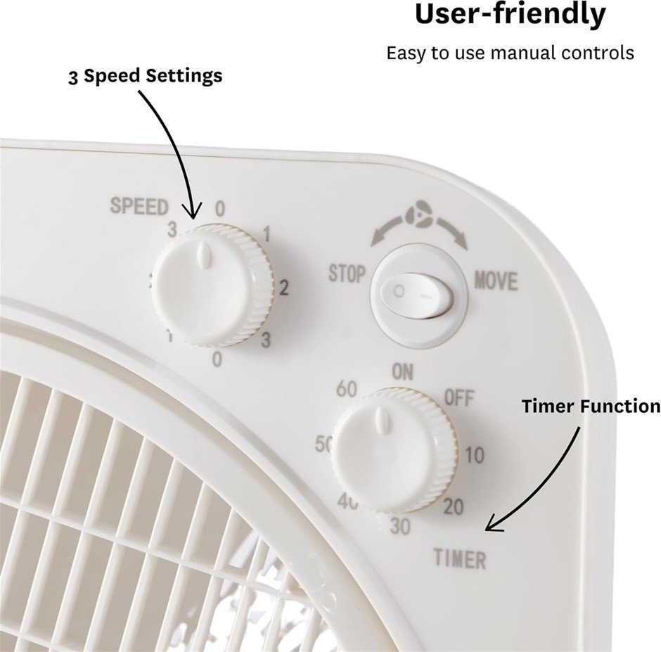 GOLDAIR Box Fan, White, 30 cm.