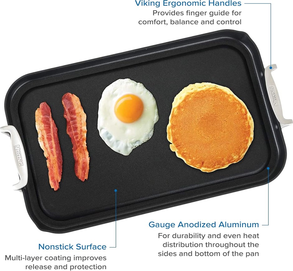 VIKING CULINARY Hard Anodized Nonstick Double Burner Griddle, Ergonomic Sta