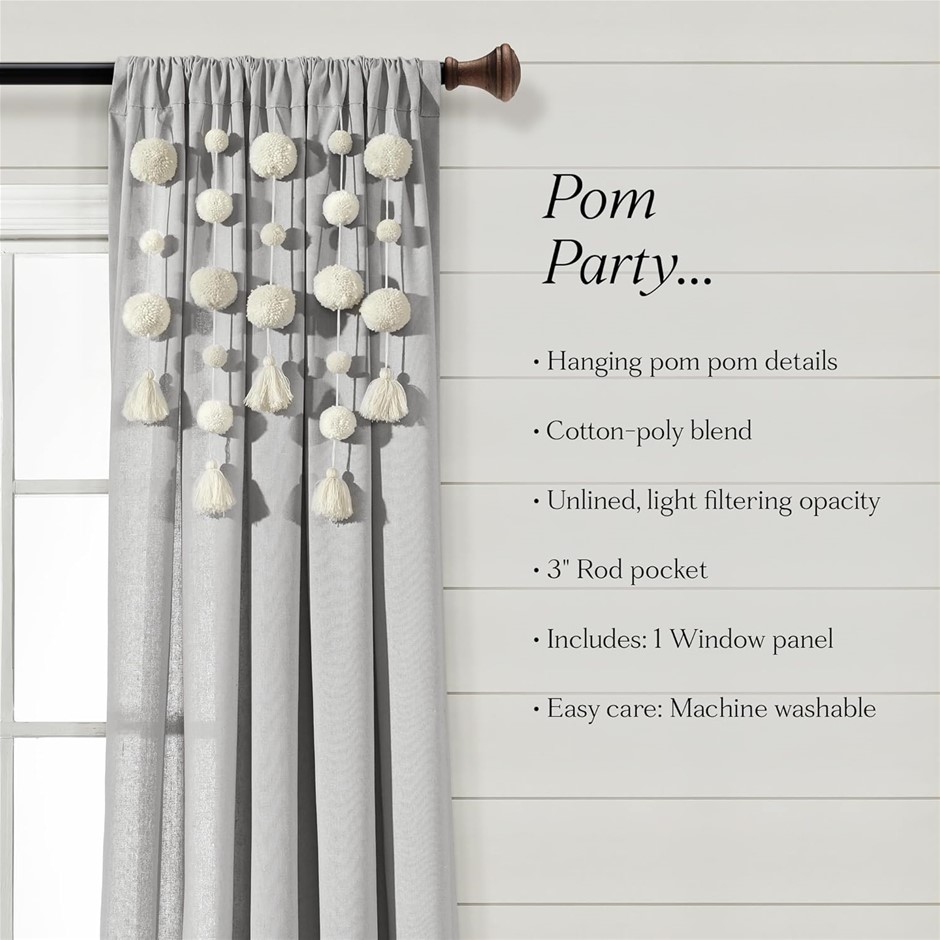 2 x LUSH DECOR Boho Pom Pom Tassel Linen Window Curtain Panel (Single Panel Lot No: 0230-5061919 |