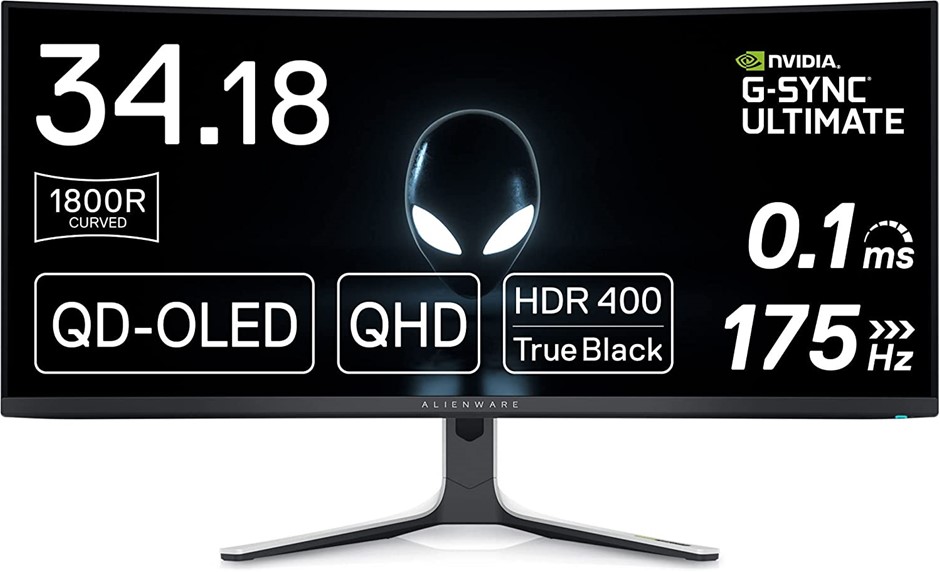 ALIENWARE 34 Inch Curved Gaming Monitor QD-OLED, QHD, 175Hz Refresh Rate, 0