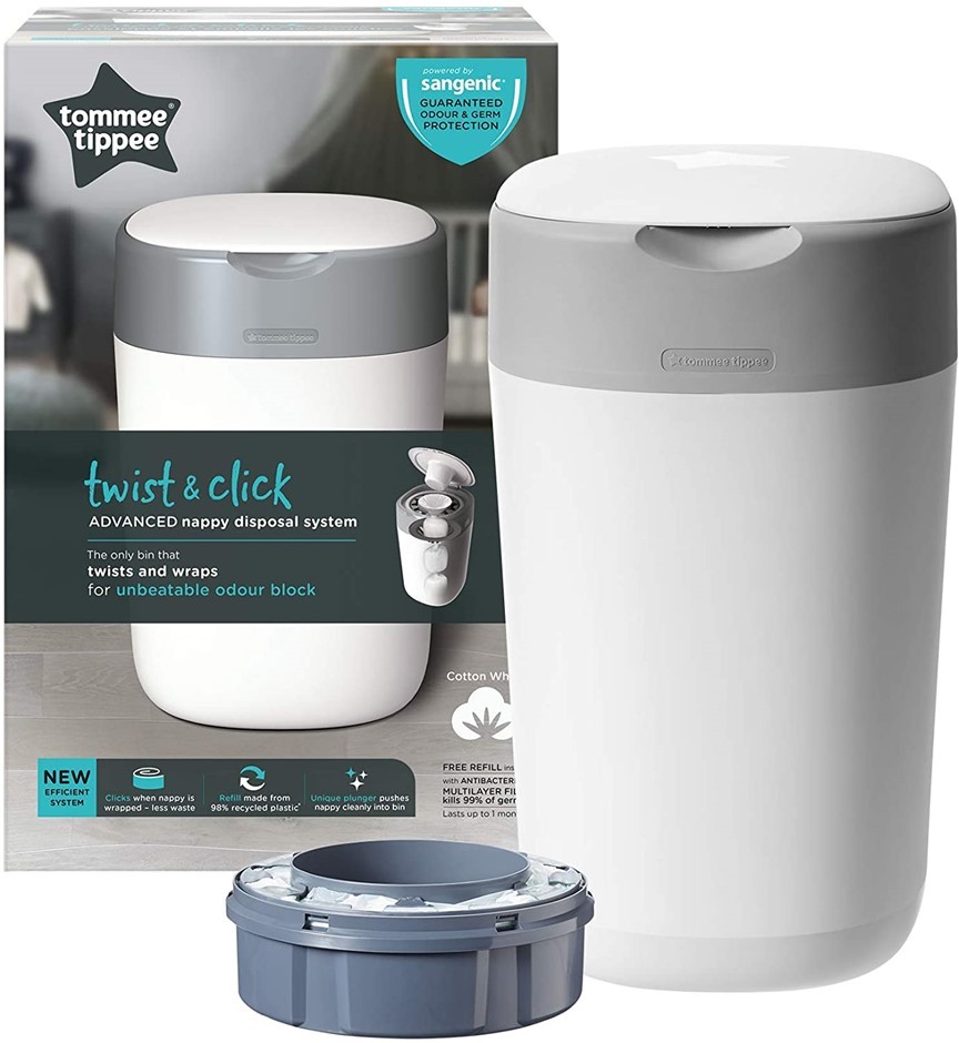 TOMMEE TIPPEE Twist and Click Advanced Nappy Disposal Bin System Powered b