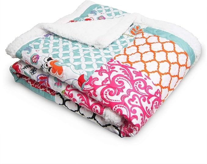 LUSH DECOR Brookdale Sherpa Throw Blanket. Size: 60 x 50. Colour: Purple/Tu Lot No: 0254-5061911 |