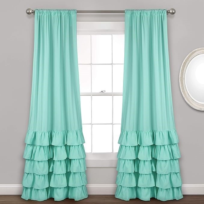 LUSH DECOR Allison Ruffle Curtains Window Panel Drapes Set for Living, Dini
