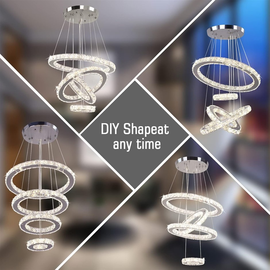 USOR LED Modern Crystal Chandeliers 3 Colors Dimmable Remote K9 Crystal Flu