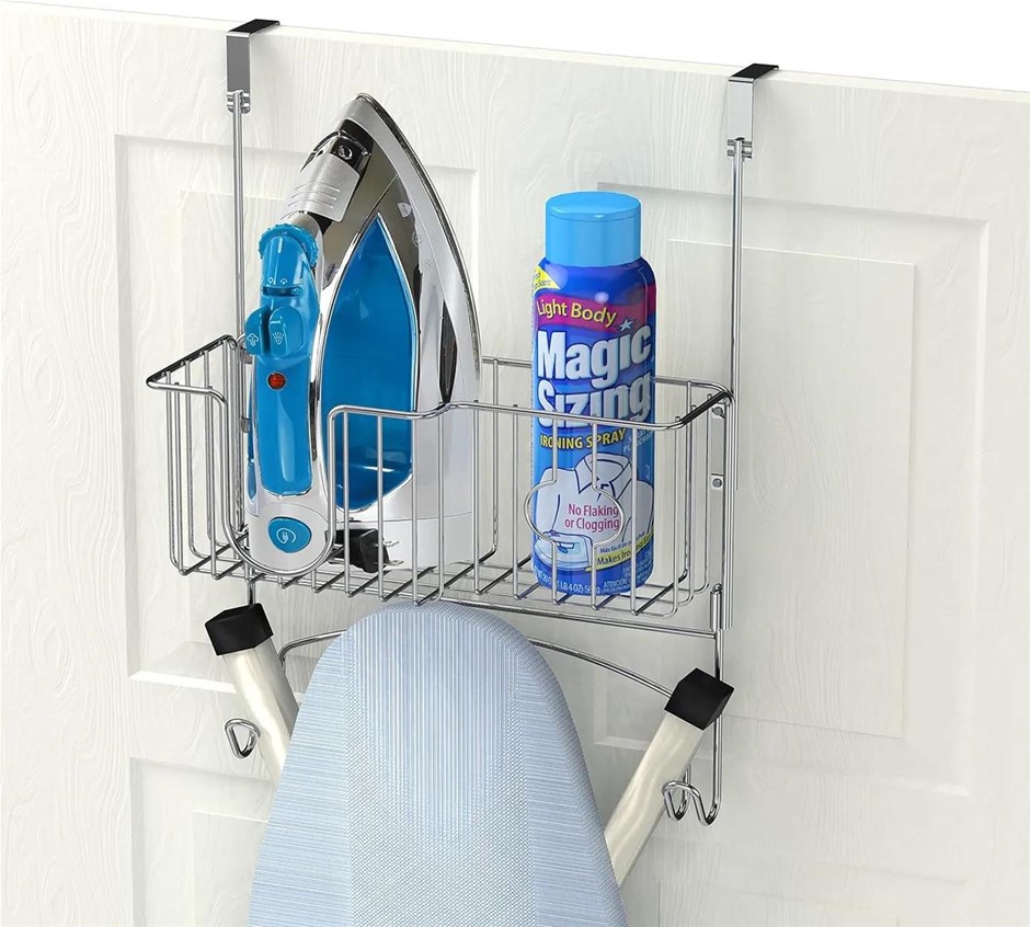 SIMPLE HOUSEWARE Wall Mount Ironing Board Holder Over The Door Hanger, Chro