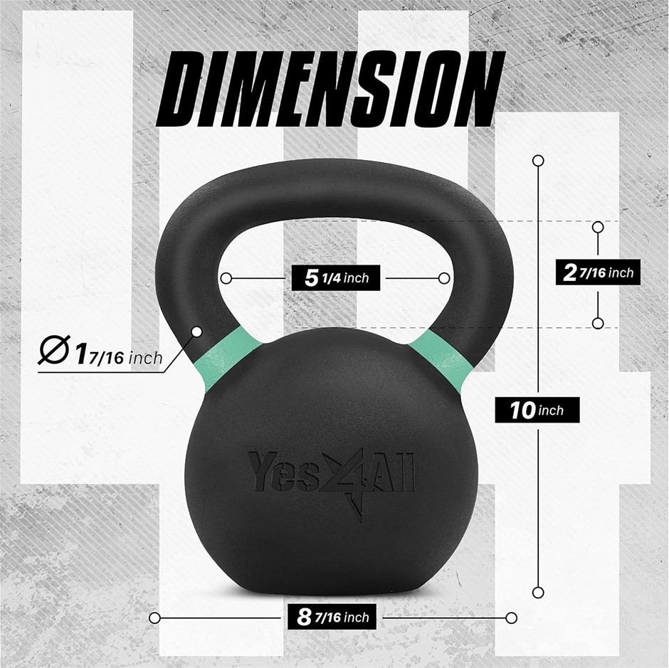YES4ALL Powder Coated Cast Iron Competition Kettlebell with Wide Handles &