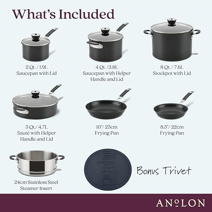 ANOLON Smart Stack Hard Anodized Nonstick Cookware, 11 Piece Set, Black. NB