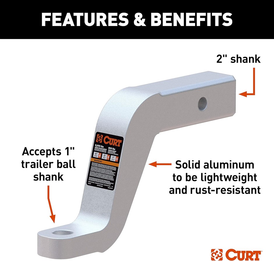 CURT 45362 Aluminum Trailer Hitch Ball Mount, Fits 2-Inch Receiver, 8,000 l