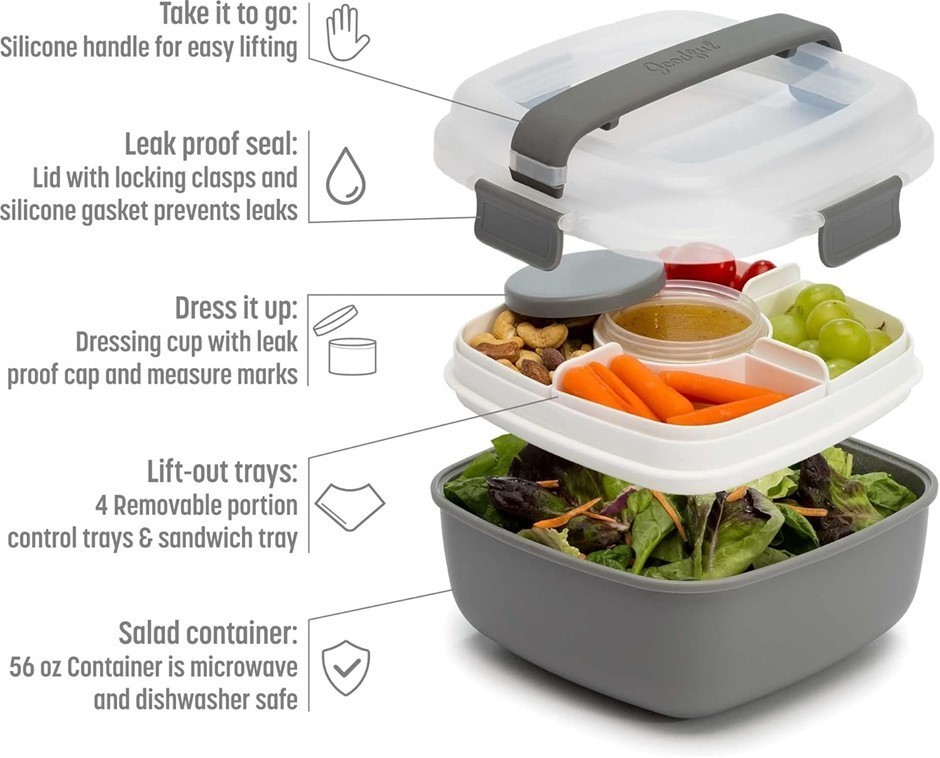 GOODFUL Lunch-To-Go Salad Container, Food Storage w/ Removeable Compartment