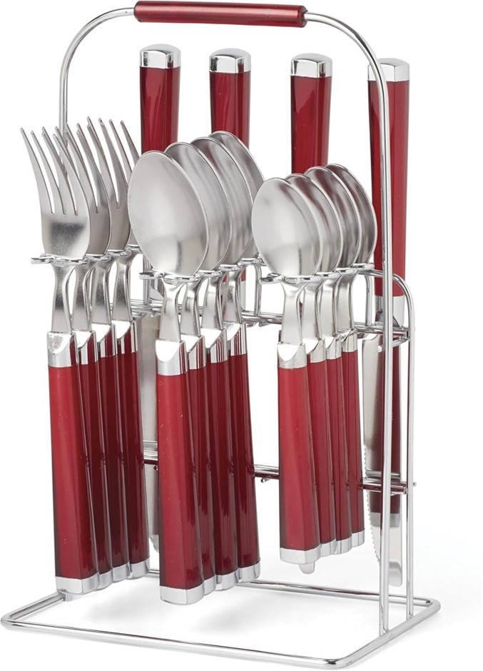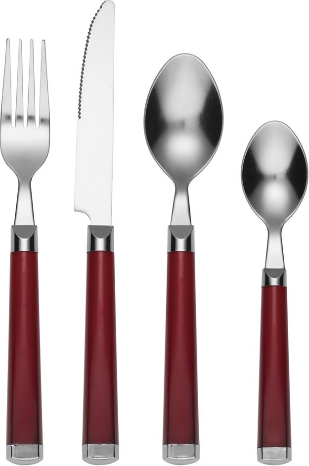CAMBRIDGE SILVERSMITHS Temptation Red 16-Piece Flatware Set Rack.