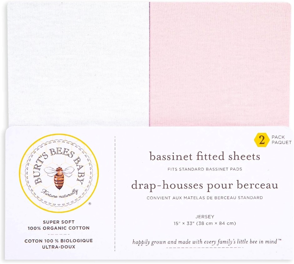 BURTS BEES BABY Bassinet Sheet, Fitted Unisex Boy Girl 100% Organic Jersey