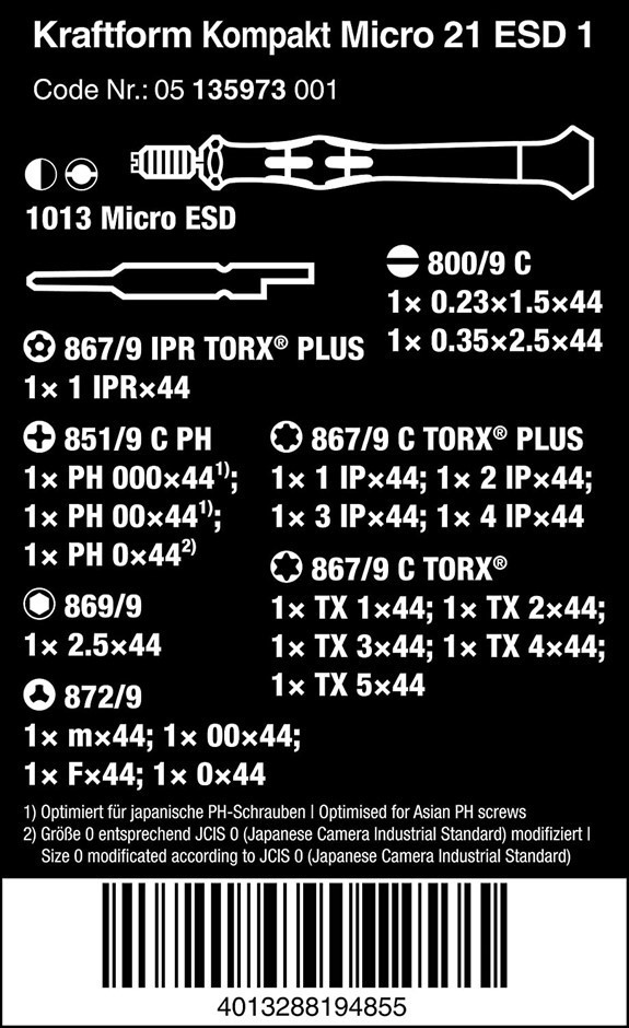 WERA 21pc ESD Kraftform Kompakt Micro Nut Drivers.