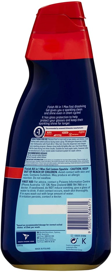 2 x FINISH All in One Max 1L Gels, Lemon.