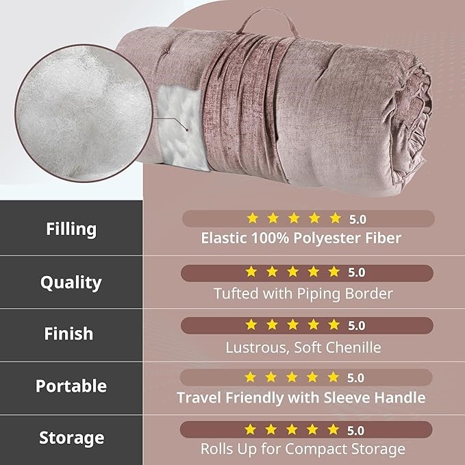 IDESIGN Edelia Foldable Poly Chenille Light Weight Lounge Floor Pillow, Cus