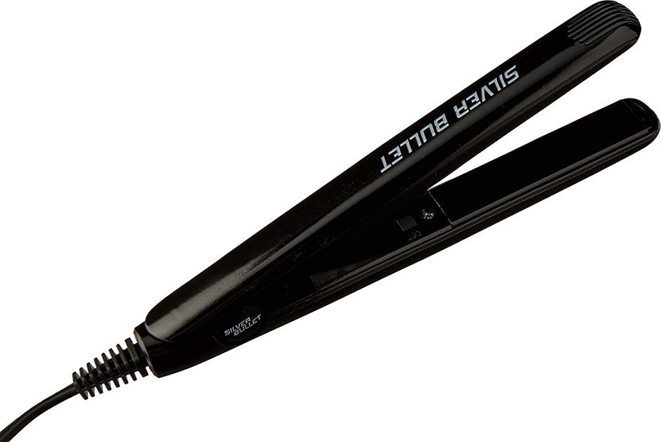 SILVER BULLET Mini Ceramic Hair Straightener, Black.