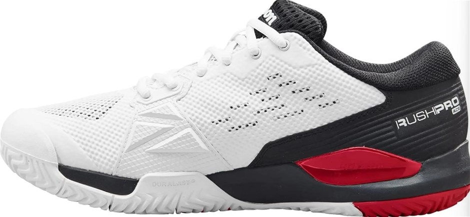 WILSON Rush Pro Ace Sneaker, Size US 9, White/ Black/ Poppy Red.