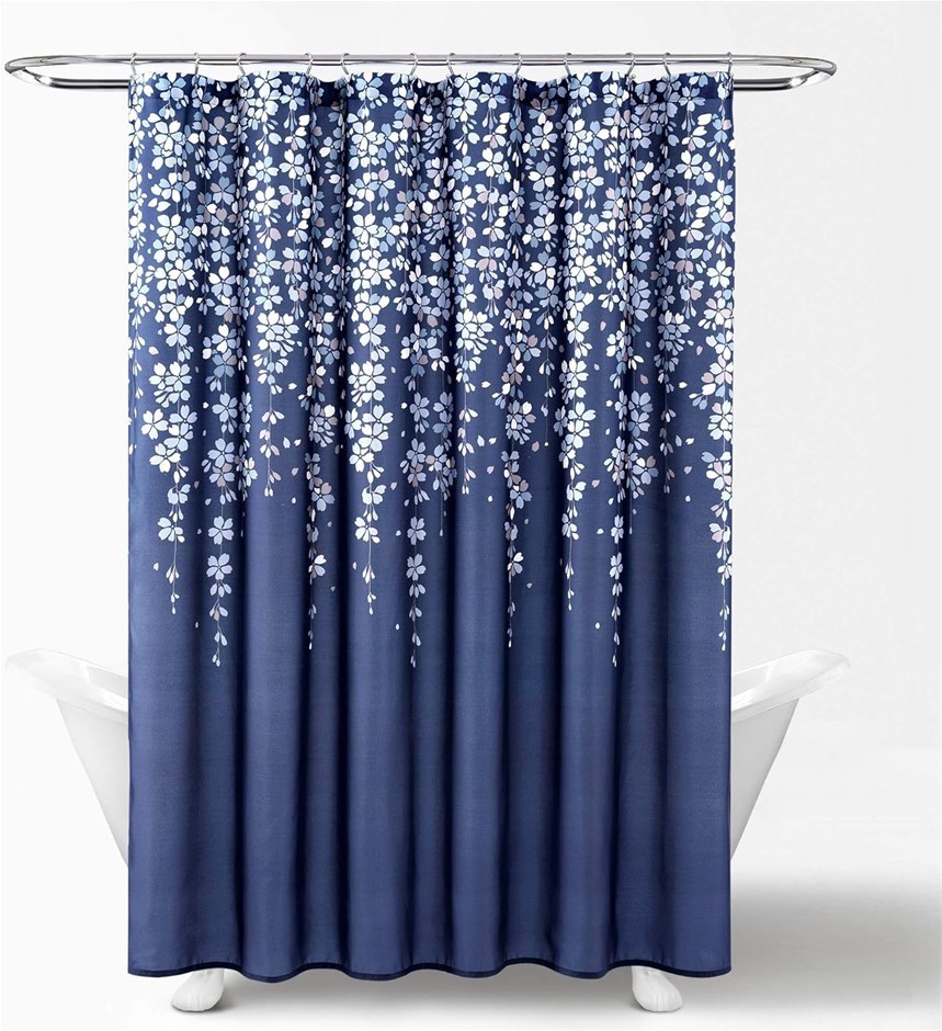 2 x LUSH DECOR Weeping Flower Single Shower Curtain, 183cm x 183cm, Navy. R