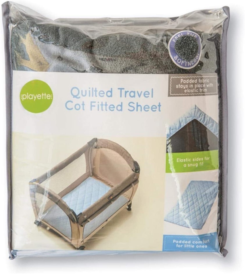 PLAYETTE Quilted Travel Cot Fitted & Padded Sheet, 500g, 73x105cm, Blue. NB