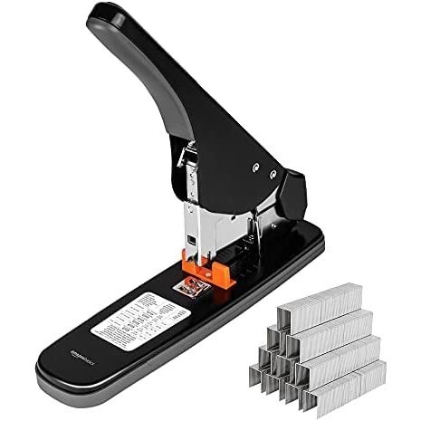 AMAZON BASICS Heavy Duty Stapler, 210 Sheet Capacity, Lever Arm, Black, E03