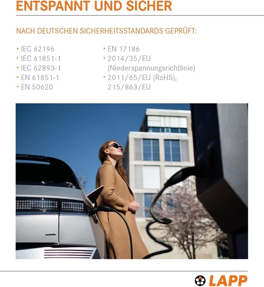 LAPP Type 2 5m Self-Retracting EV Helix Cable 22kW 3P 32A, Type 2 to Type 2