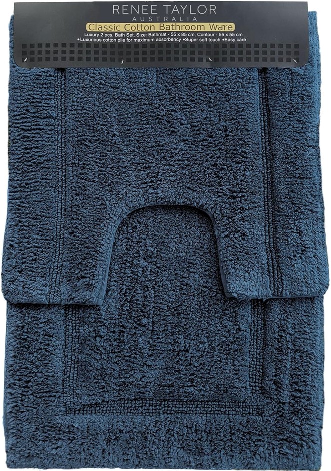 RENEE TAYLOR 2pc Tufted Bath/Contour Mat Set Cotton 2200GSM. Colour: Blue