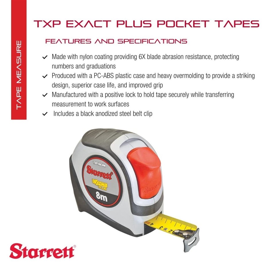 STARRETT Exact Plus KTXP106-8M-N ABS Plastic Case Red Measuring Pocket Tape Lot No: 0020-3140544 |