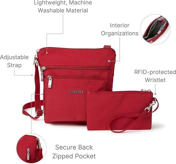 Baggallini Pocket Lightweight Crossbody Bag – Spacious, Water-Resistant Tra