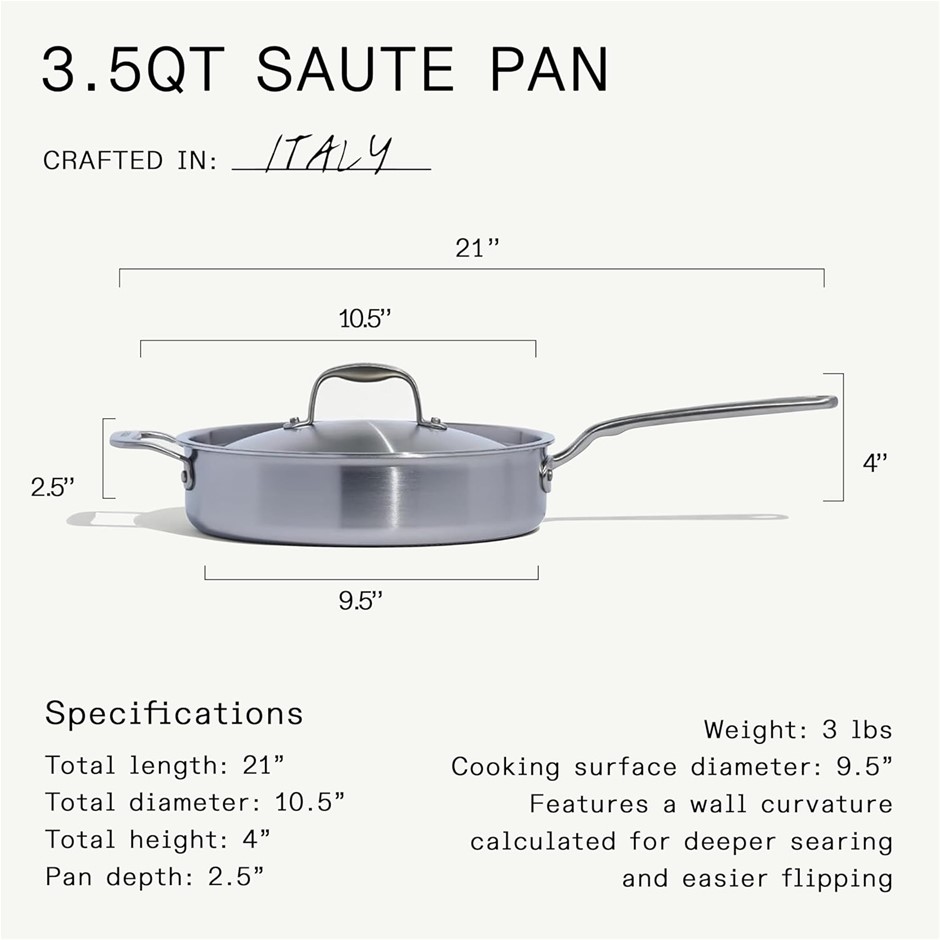 MADE IN COOKWARE 3.5 Quart Stainless Steel Saute Pan, 5 Ply Stainless Clad, Lot No: 0060-5061913 |