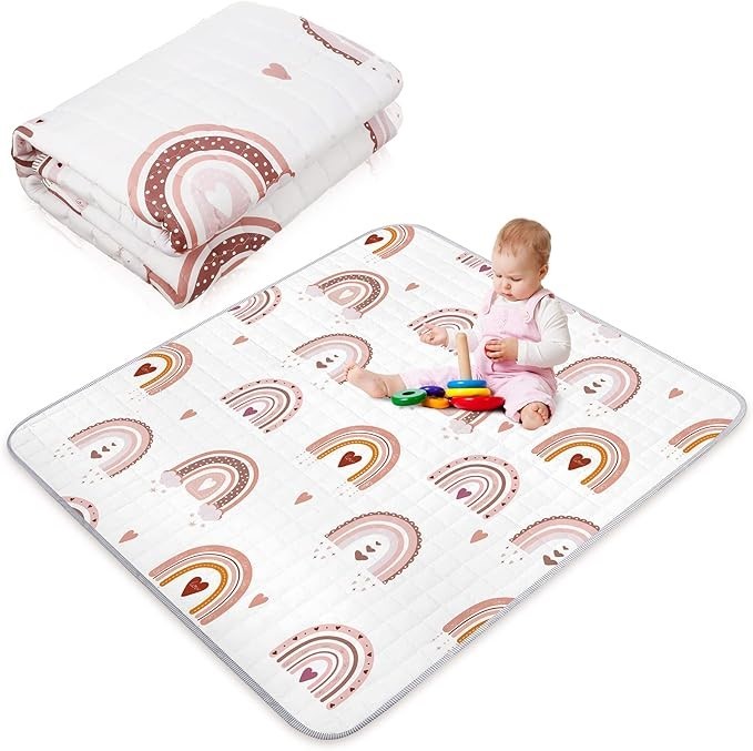 FUNTERY Boho Rainbow Portable Baby Play Mat, 43 x Inch Washable Foldable Cr