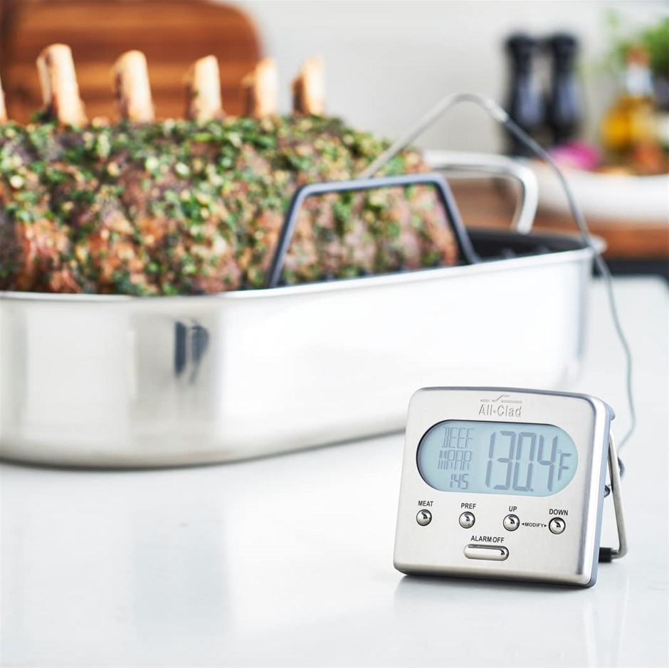 ALL-CLAD T223 Stainless Steel Oven Probe Thermometer with Blue LCD, Silver.