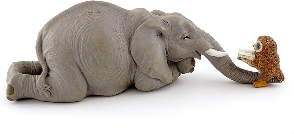 TOP Collection Miniature Garden Elephant Reading Book with Owl, Gray