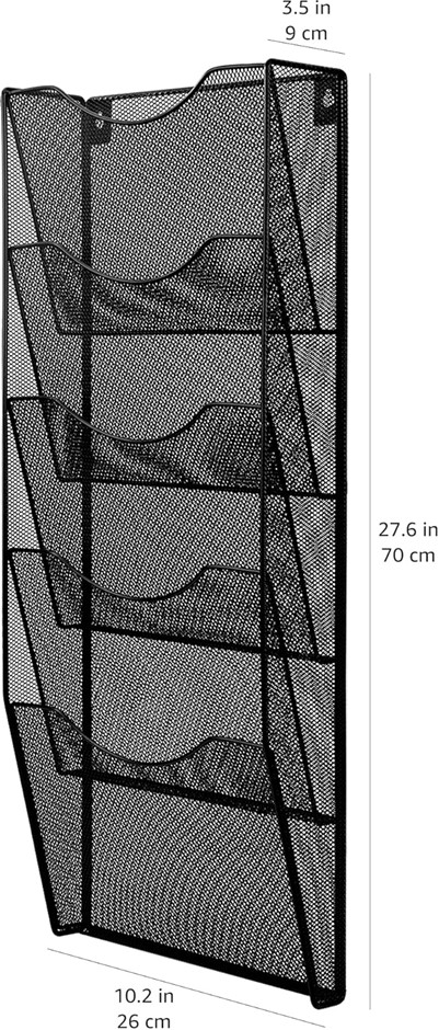 AMAZON BASICS 5 Pocket Wall Mount File Holder, Metal Mesh Hanging Document