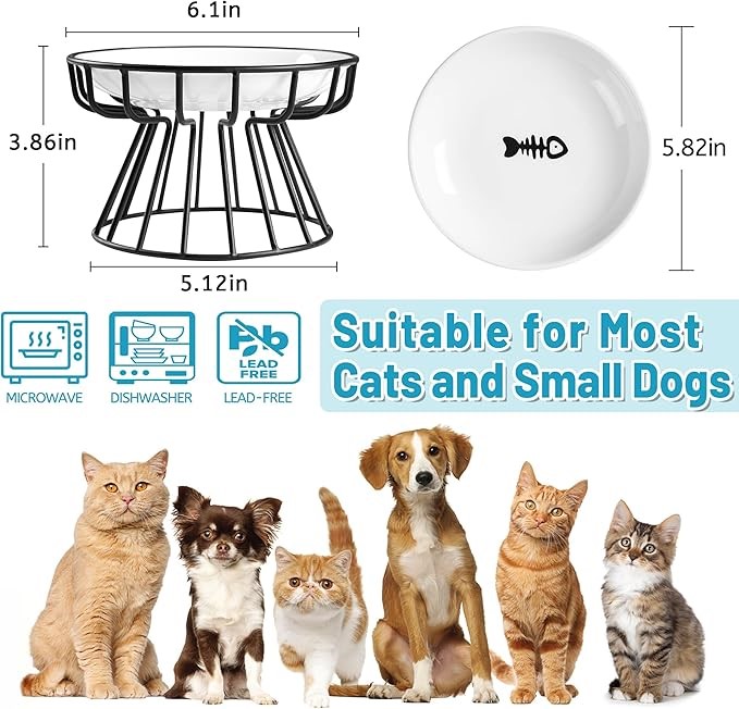 WELLBRO Elevated Cat Bowl, Raised Ceramic Cat Dish with Metal Stand, Dishwa
