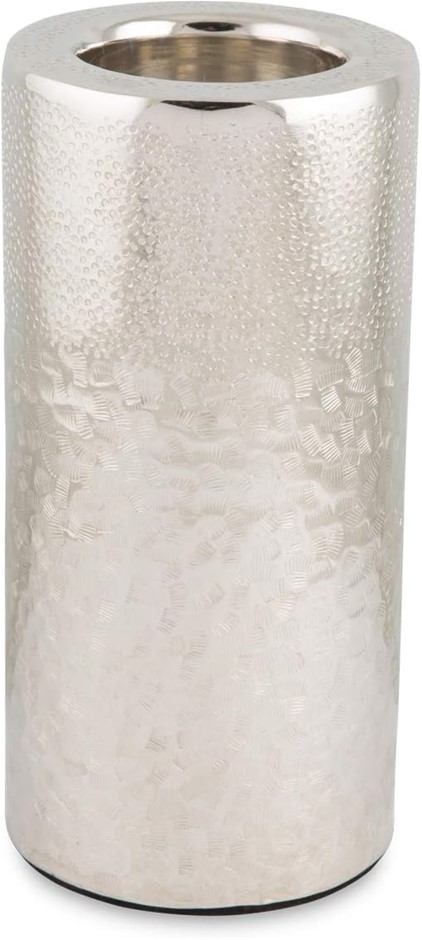 BOHO TRADERS Aluminium Multi Hammer Round Pillar Candle Holder, Large, Silv