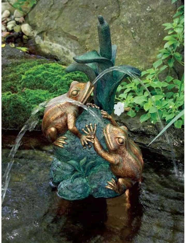 AQUASCAPE Double Frog with Cattail Spitter Fountain.