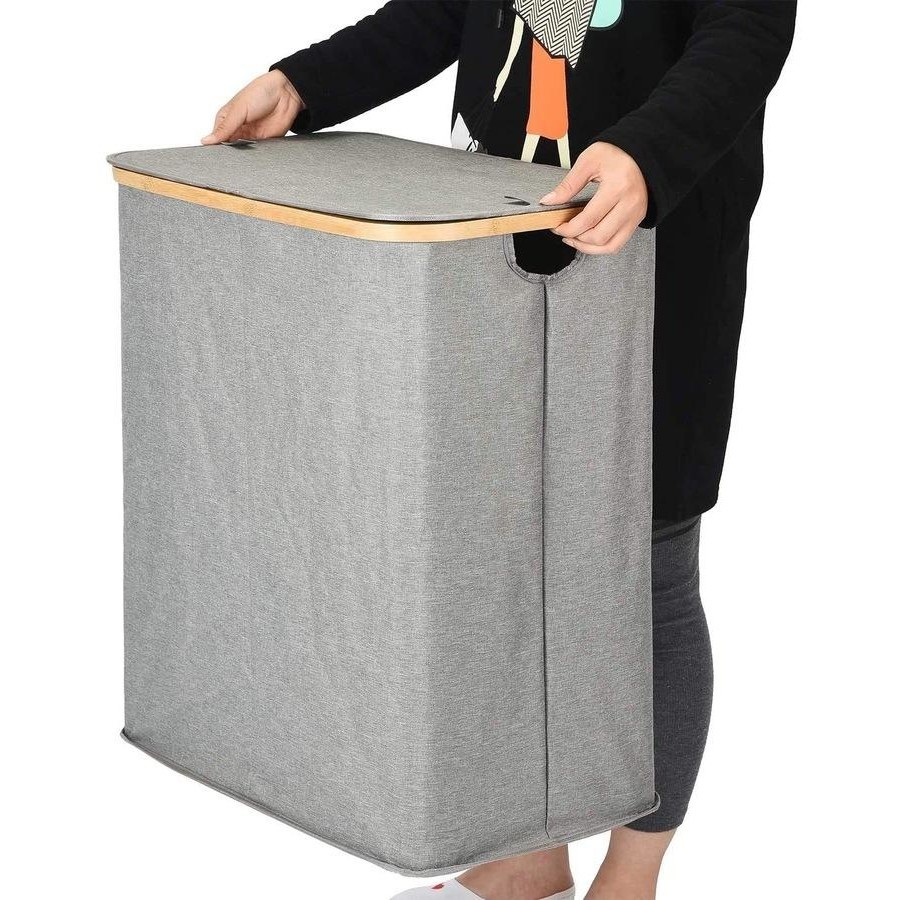GENERIC BRAND Divided Folding Bamboo & Canvas, Double Large Laundry Basket