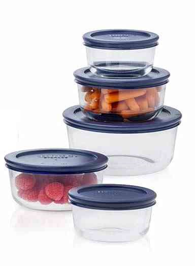 5 x PYREX Easy Grab Glass Bake 'N Store Round Containers with Blue BPA Free