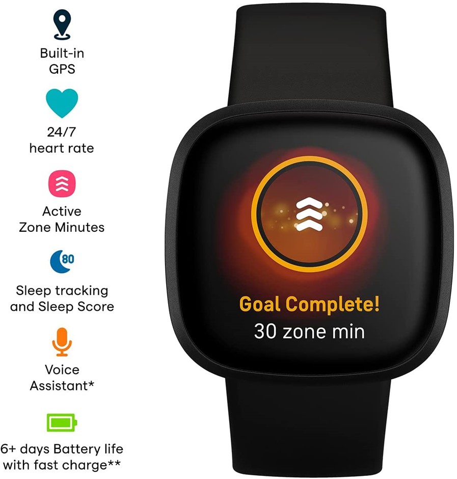 FITBIT Versa 3 Advanced Fitness Watch with GPS and Voice Control, Black. NB