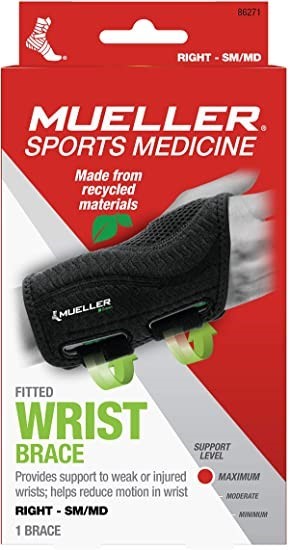 MUELLER, Fitted Wrist Brace for Right Hand, Small/Medium, BLACK/ GREEN. Des Lot No: 0062-3140574 |