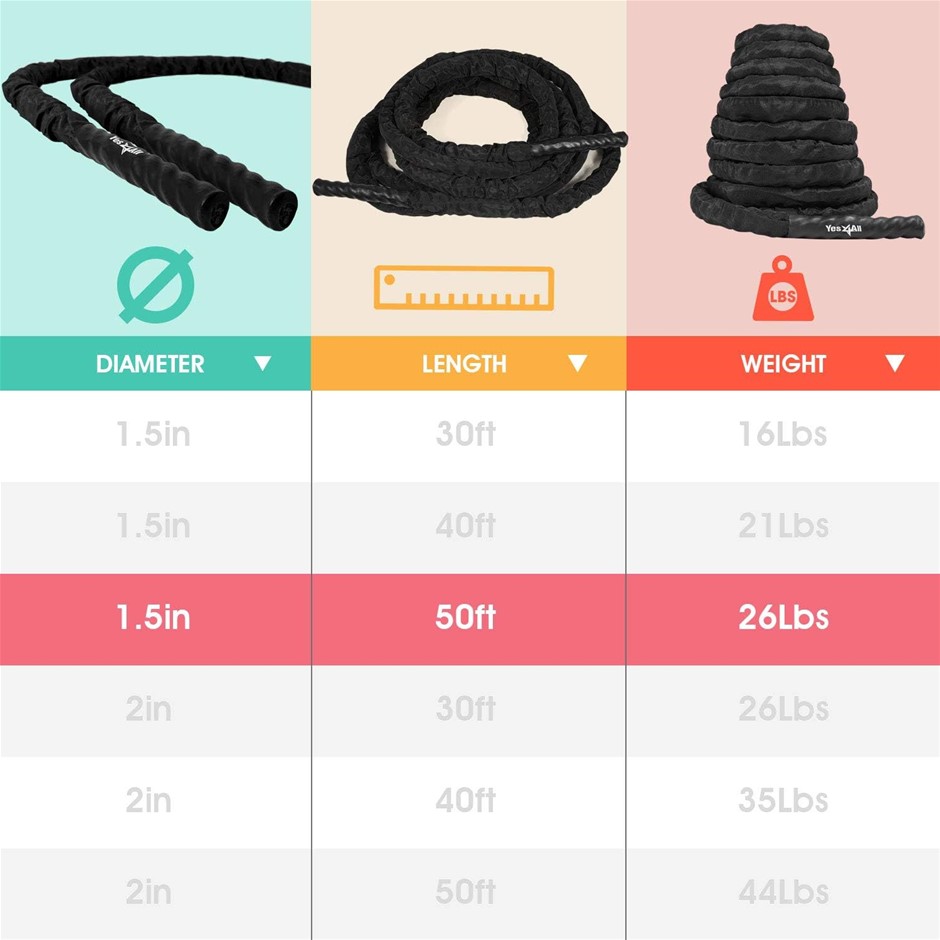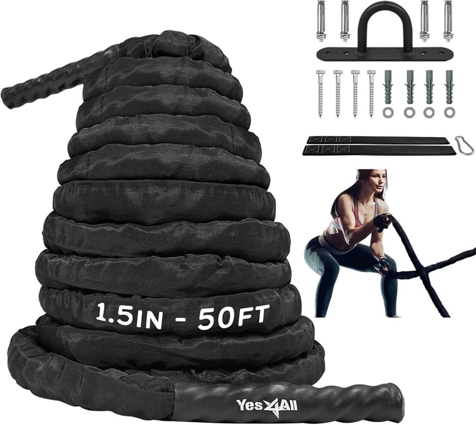 YES4ALL 15M Battle Ropes with Cover, Battling Rope for Training, Heavy Exer