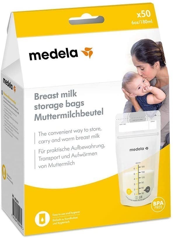 MEDELA Breast Milk Storage Bags, 180ml, 50 in pack, Freezer safe, resealabl