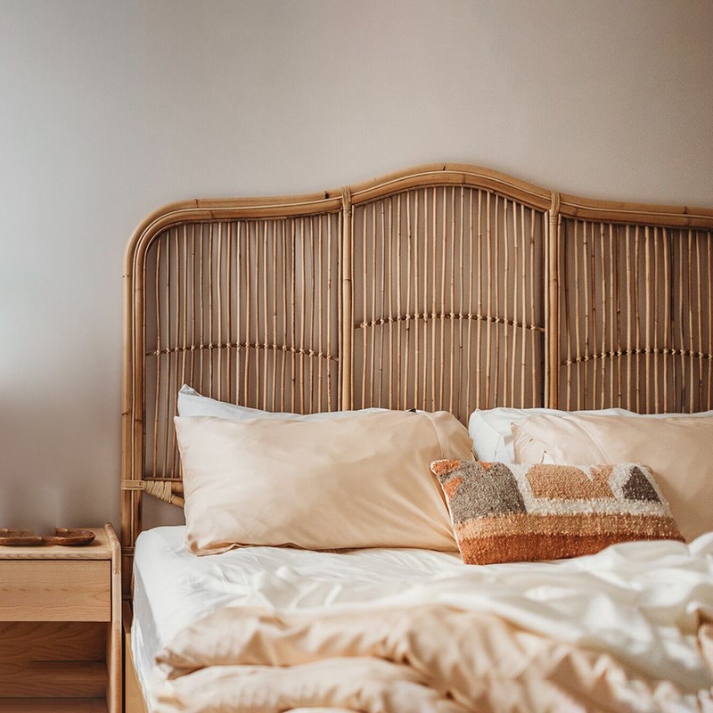 TEMPLE & WEBSTER Natural Marley Rattan Bedhead. 162cm H x 190cm W x 4cm D,
